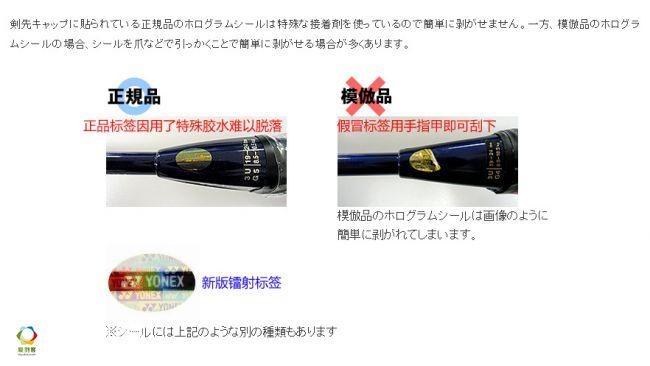 对于目前只要产品包装上有YONEX镭射标签,都适用!包括:球拍,线,球,袜子,鞋子,手胶,鞋垫......等。但这只是一个简单的参考,大家最好结合钢号,底盖,包装,颜色,细节......等综合来判断,这样更加准确!