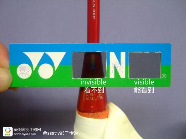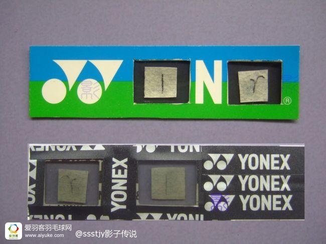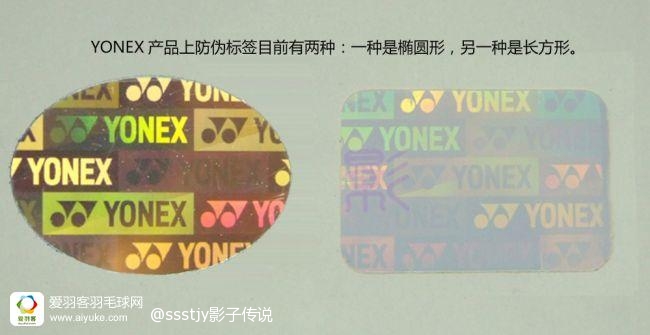 YONEX镭射标签主要有2种,椭圆形和长方形,都会贴在其真品产品上。它使用一种特殊的胶水,难以脱落。兼顾一定的光学防伪,难以仿冒!可惜YONEX官方的防伪鉴定卡属于违禁品不能普及。因此影子自力更生,灵活变通,自制异曲同工的作品。