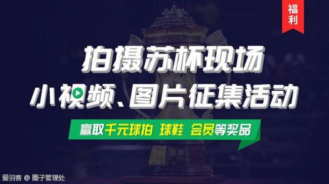 现在拿起手机,随手拍摄苏杯现场有趣小视频或者大量现场有趣图片,发送到爱羽客指定圈子,就能获取一个月VIP。精华帖还有机会赢取千元评测球拍、亚瑟士新品球鞋等超多大奖。