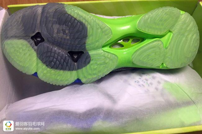 底部:RANGER的大底材料为透明的水晶大材料,从而很清楚能看到中底的部分结构和前掌的黑色Bounse+反弹支撑片,科技感十足(灵感来自篮球鞋?)。水晶大底并不是天然橡胶加工而成,据透露这是人工合成的类橡胶产品。水晶大底硬度较软与天然橡胶相近,但抗氧化程度会更好(应该不会太容易发黄)。大底纹路是这双鞋最大的特点,它的纹路再也不是那种有一定数量和规律的圈圈和勾勾,而是模仿生物脚掌底纹。前掌底纹分为五个小模块模仿生物的五个手指,每个模块的纹路都是模仿人类的指纹一样,为前掌提供更为强大的接触感和反馈感。后跟分为三个纹路模块非常像动物的蹄子,有着较好的稳定性。RANGER在鞋底依然保持着李宁的传统设计:鞋底拥有多个透气孔。足弓部分不再是常见的黑色碳板设计,取而代之的是新款高强度NYLON12尼龙材料。尼龙片只要处理好了也能达到碳板的支撑防扭转效果,所以大家可以不必迷信碳板的神话了(其实市面上大多数中低价位的鞋子都是在足弓部分加入尼龙片),关键不是材料种类,而是实战效果。这次RANGER在前B+后C的设计上也有很大改变,使用了超大面积的Bounse+(黑色区)和Cushion(绿色区)材料。具体可以看AYAM009-2的拆解图。