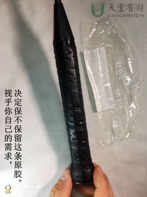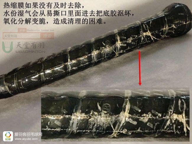 正常的情况建议拆掉,一方面为了降低不必要的重量,一条热缩膜正常都是1-2克的重量,还不包括上面的标莶纸。另一方面就是热缩膜上面打的易撕洞,会让汗液/水气,容易从洞口渗入,但里面却不容易挥发出来,所以时间一长里面的手胶就会被沤坏,然后跟氧化解体的底膜糊化在一起,造成日后清理上的麻烦。