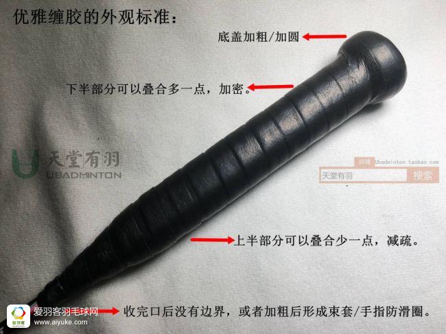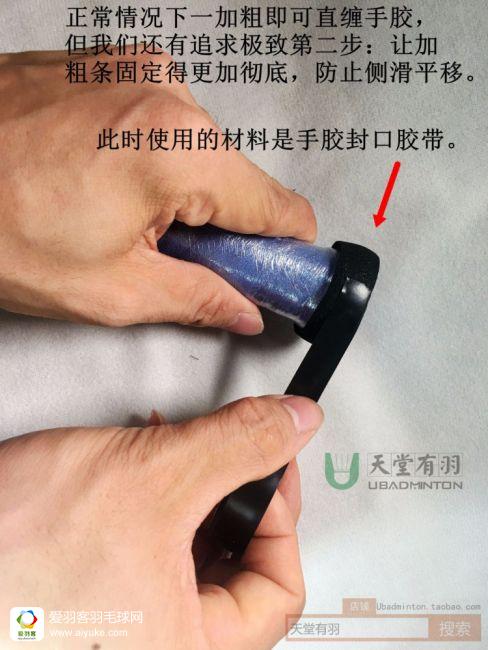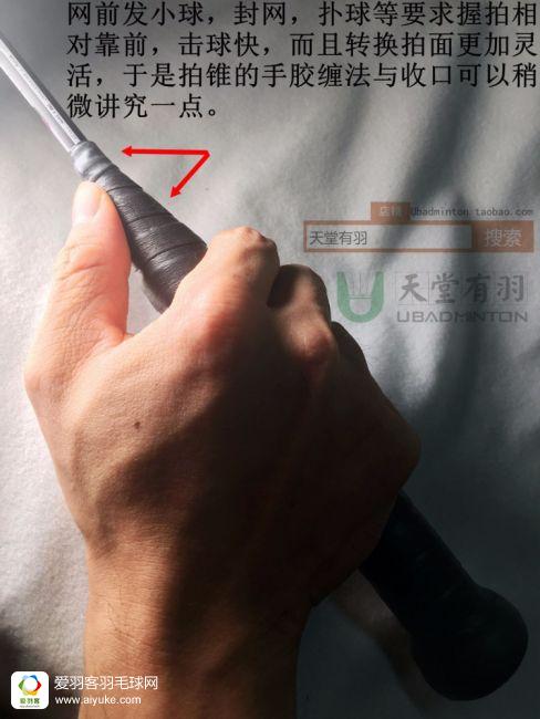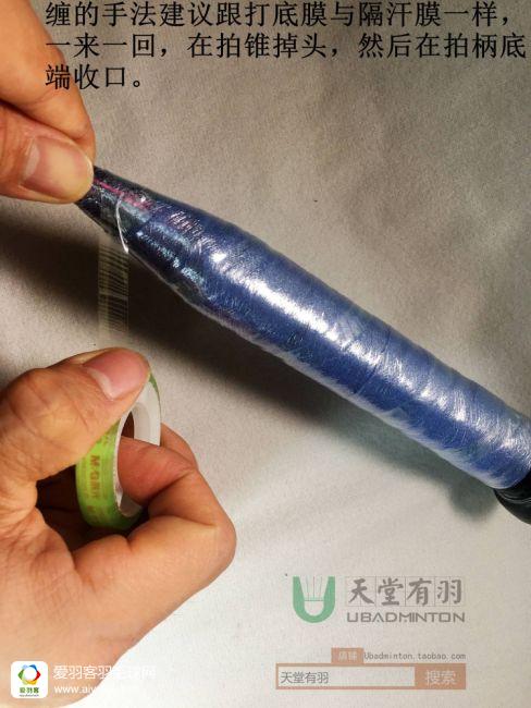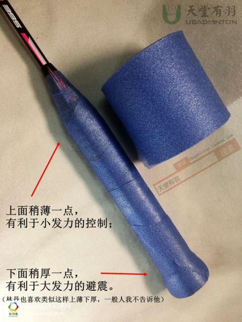 人要找准方向,手胶也一样,只讨论右手持拍的情况下,往顺时针方向还是逆时针方向缠,是个重要问题,但很多人并不知道这一点。****是直视底盖时,手胶的绕圈方向最好是逆时针,因为羽毛球拍击球最大力的一瞬,来自剧烈内旋那一下,顺着这个发力的方向缠手胶,手胶才能“拉住你”,发挥出最佳的防滑与避震性能,不会越用越松,反过来,顺时针方向缠的话,在发力的过程中,手胶没有办法“顶住你”,所以会越用越被手掌推松。其实这个跟汉服是右袄还是左袄的讲究是一样道理的。