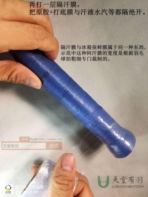 打底膜的另一个好处,可以在千篇一律的木柄上面做出不同外观。比如林丹就是这种差异化的追求者,他缠手胶只缠下半部分,上半部分只缠一层医用胶带或者干脆露出木柄。我们正常人也许不用像林丹那么另类,但也可以学习他的处理方法,比如大发力的时候握手柄的下半部分,下半部分可以用多几层打底膜,弄得更厚更避震一点;小发力的时候握手柄的上半部分,这个可以少用甚至不用打底膜,这样棱角感更好,力量反馈更直接,有助于网前这些需要精确控制的手感球的处理。