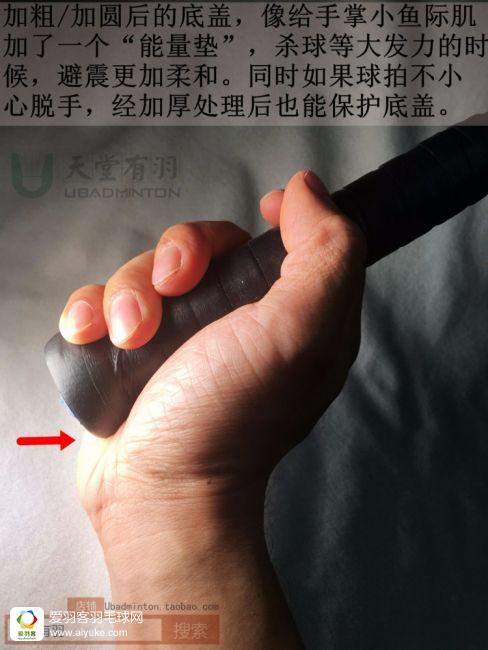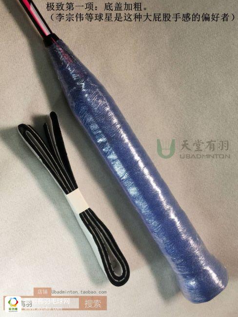 对羽毛球拍底盖而言,加大是趋势,底盖越大,越显得生产工艺好,用起来也越容易防飞拍,同时手掌小鱼际肌的触感就越好。但底盖大到一定程度就不能再大了,再大就会很容易松开甚至掉出来。所以继续加粗的重任,就留给专门的加粗条了,李宗伟就是这种“大****”的偏好者,他的球拍正常来说都会做底盖加粗处理,无独有偶,确认我们国家队不少新老队员也喜欢这么弄,在这些球星的影响下,这几年陆陆续续有像金万利,羽迷等品牌推出专门的加粗条。