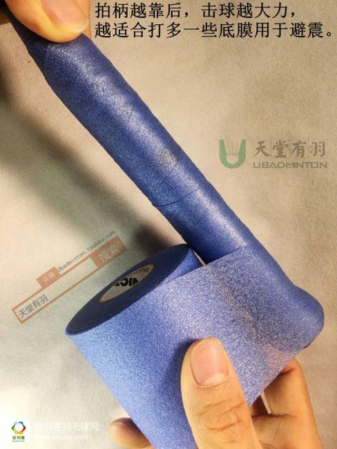 前面提到,用拍跟穿鞋很像,我们需要手胶,就像走路需要穿鞋,而穿鞋需要穿袜,但袜子的避震还不够,所以需要鞋垫。打底膜之于用拍的作用就像是这层鞋垫。如前面提到的,普通手胶,正常来说,避震与重量成正比,也许你会因为怕太重,太厚,而不敢追求更好的避震,而打底膜解决了这一点,让你可以尽情的追求你想要的避震,同时根本不需要担心重量的问题,因为他通过发泡处理后,不敢说轻若无物,至少也可以说正常使用的话,重量几可忽略。而且这层珍珠棉材质的膜,还能够形成细微的孔洞结构去抑制细菌生长,道理好像现在的羽毛球场,都喜欢在场地下面垫一层珍珠棉,这样就能防止下面长虫子,地上的湿气也会被隔绝。