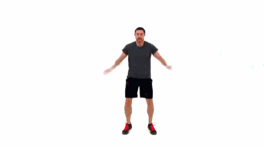 向上运动时,双腿快速跳起,双手由前向后摆动,还原时,注意膝盖不能超过脚尖。