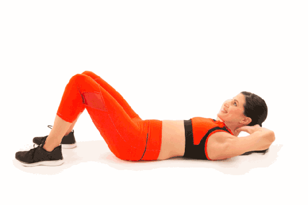 起始姿势为屈膝仰卧于地面上,双手放于头后。