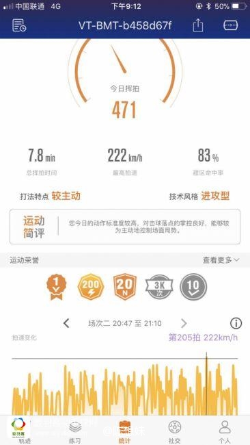 不过在实战过程中发现两个问题,不知道是距离太远的原因还是信号的不稳定,在录制视频时会偶尔出现一些数据不及时的情况,作为新产品有问题一定要提出!很影响用户体验啊,要是有时候自我感觉这一拍跳得很高,杀得很准,球速很猛,回头看视频却发现这一拍没有实时数据,那就尴尬了。还有就是VICTOR i录制的视频不能导出相册,只能在APP里观看,如果能把这两个问题优化,相信用户体验一定更棒。
