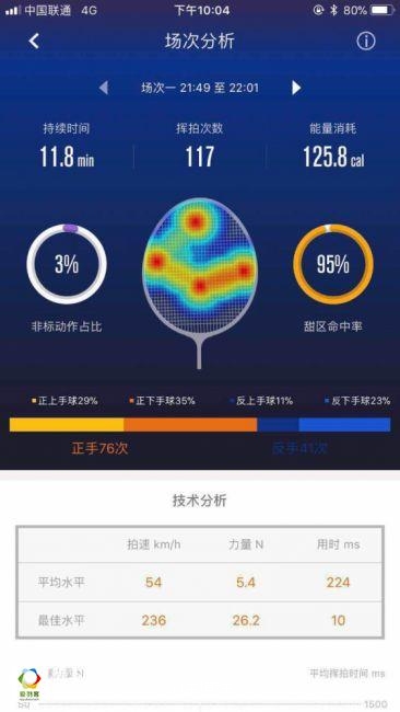 通过智能传感器统计的数据信息进行智能分析,能够大致的判断球风和习惯,并对当次的运动做出简单的评价,这很不错,要是还有一些针对性的建议的话,我相信对于很多羽毛球初学者会有一种指路明灯的作用。