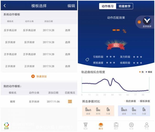 在模板训练模式中,可以点击添加模板,让大神或者教练用爱兔酱演示,此时大神的击球数据就会被录入智能传感器。在日后训练过程中,即便大神不在身边,也选择大神的数据为模板进行训练,根据对比自己的挥拍曲线与模板曲线,来校正自己的动作。