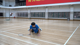 注意:这个动作要在于基本上的身体机能的情况下去做到这个动作才不会容易受伤,首先要做这个动作的时候,回球基本上被动的情况下才做这个动作。如果在主动的情况下回位来得及,只需要跨步。