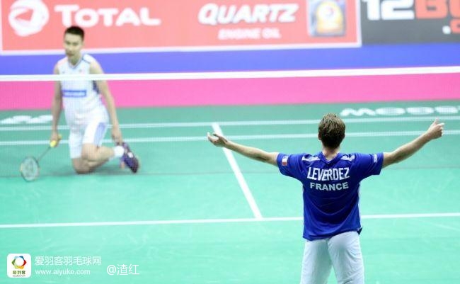 胜利一刻,法国人振臂高呼,形成鲜明对比的是李宗伟落寞的身影
