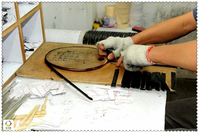 我们手中的球拍打起来很舒服又很漂亮,许多球友对球拍如何生产出来的始终不太了解!其实它的过程是来之不易的,是一个很复杂的生产过程,大约有一百多道生产流程,这里我为天网球友们介绍一部分过程,使大家对羽毛球拍有一个基本的了解,看到图您就会知道了。(高温定型工人最痛苦,一般都在40度60度之间进行)