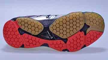 可惜随着HERO 2的滞销,这项技术也没有获得太多的认可,然而事实上,这款球鞋的每一个鞋底的柱状体都能提供优秀的多方向止滑,同时可以根据羽毛球运动的运动特点,GUIDE LINE 把每一块大底功能都区分开来,根据受力位置的不同调整了柱状体的性能,做到弹性和缓震的完美平衡。