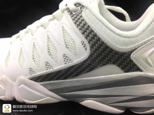 我手上拿的是刚刚从爱羽客上购买的白色款多 维 加 速 度3.0,鞋子整体给我的感觉是,没有HERO 2那般“发沉”,鞋身网面的设计也有别于驭龙那般“厚重”,可谓是在球鞋轻量化上作出了一些进步。