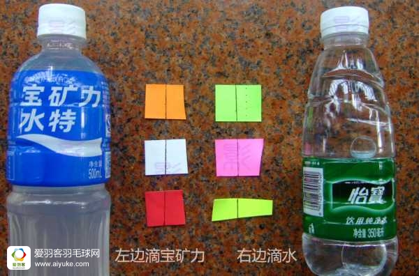 影子用纯净水和模拟我们手汗的宝矿力饮料来简单对比这6款手胶的“吸汗性”。