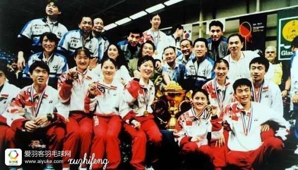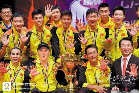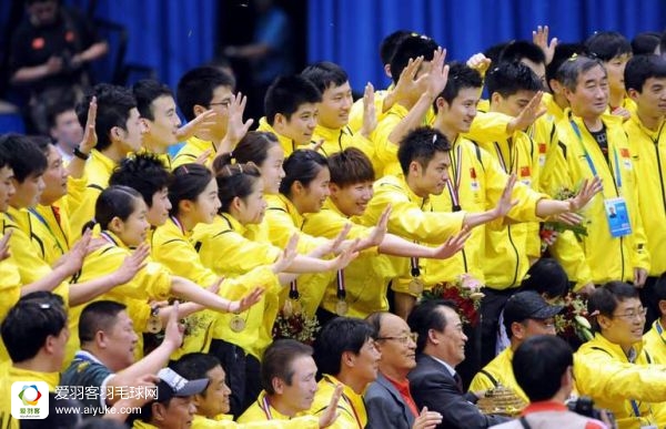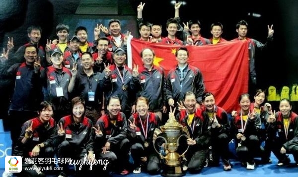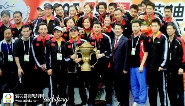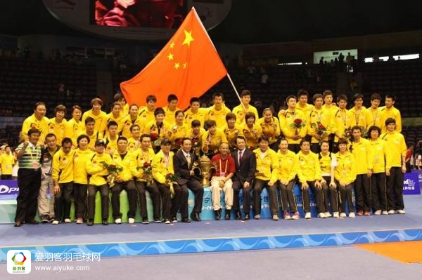 冠军 中国队:谢杏芳、张宁、林丹、鲍春来、蔡赟、傅海峰、陈其遒、张军、杨维、张洁雯、黄穗、赵婷婷、高崚