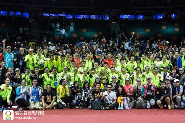 冠军 中国队:谌龙、林丹、蔡赟、傅海峰、张楠、柴飚、洪炜、徐晨、刘成、于洋、唐渊渟、马晋、赵云蕾、李雪芮、王仪涵