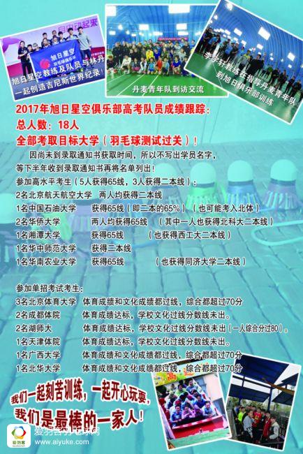 旭日星空羽毛球俱乐部成立于2001年,是北京市最专业的羽毛球培训机构。通过十多年的钻研,拥有最科学合理的训练体系。十余年来队员们获得各种比赛奖项无数,在北京市当之无愧的最高水平青少年羽毛球俱乐部。在这里,你不单单可以收获健康的身体,更可以近距离的和北京市乃至全国的羽毛球高手们一起比赛、一起生活和交流、一起玩耍!