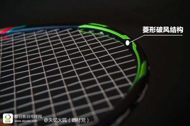 新色JS10在物性上没有做太大的调整。拍框采用了能够综合速度与稳定性能的复合型拍框。拍框上1/3部分采用的是亮剑系列的菱形破风结构,中部采用了流体破风结构,下1/3部分采用的是介于菱形破风结构与盒式结构之间的紧致化菱形框体。拍框下半部分面积收缩,有效降低了空气阻力,提高了拍面利用率,同时缩小拍框面积也提高了球拍甜区甜度,增加击球时的打击感,提高击球威力。