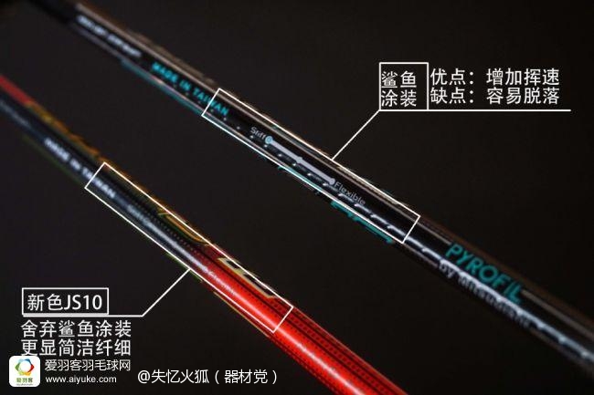 一、新色JS10去除了鲨鱼涂层。鲨鱼涂层曾经是老色JS10的卖点之一,凹凸不平的鲨鱼涂层,能够通过扰乱尾流来增加挥拍速度。新色JS10去除了鲨鱼涂层,将科技水标尺寸缩小并对其位置进行调整,整体显得更加简洁。