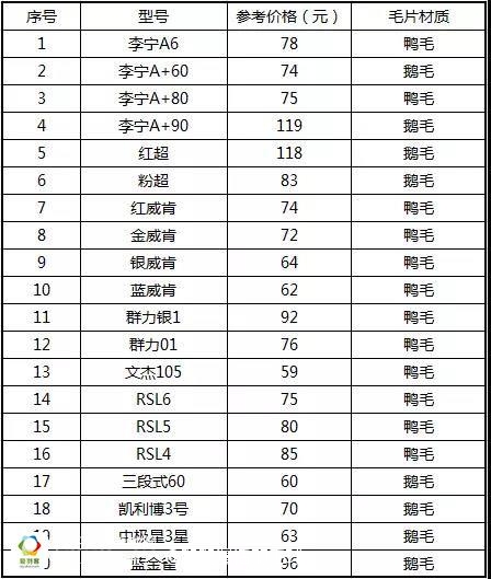 官方介绍:优质水鸭大方毛,耐打性、飞行性一般,适合初中级球友训练