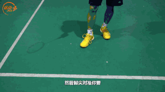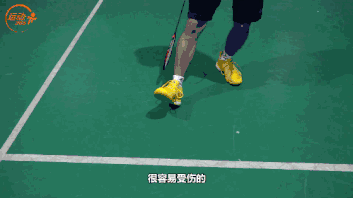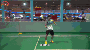 抓好之后,你在搓网的时候,一定是右脚跨之后一步脚跟着地,然后脚尖对准你要跑的这个方向