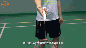 所以正确的握拍方式应该是将你的大拇指的侧边骨头的这个位置,顶在平面上面,所以你应该是侧顶,顶好之后应该是很放松的这种感觉
