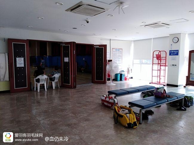 本次来韩国的总行程为期一个月整,时间不短不长,应该也可以较为充分的参与到日常羽毛球锻炼中。另外,根据在大田市中国朋友的描述,在该体育馆打球的韩国人比较固定,反反复复还是以那几波人为班底,但新面孔依旧常见。体育馆的全称为“大田市东区国民体育中心”,共四层(含B1层)。B1层是一个小规模的游泳池,有****区和儿童区,费用是1500韩币(约合人民币9元)两个小时,还有一个小卖部。一楼是办公区,旁边具体是什么健身项目从来没有关心过,不知道。二楼是健身房、淋浴室、高尔夫球馆。健身房偏贵,每个月4-5万韩币(约合人民币240-300元),高尔夫球馆价格不知道,淋浴免费。三楼是乒羽馆。三楼平台另一侧是妇女儿童健身中心,应该是练习舞蹈健美操之类,从来没有过去,具体情况未知。羽毛球和乒乓球共用一个总规模为四片羽毛球场地的场馆外加一个主席台,一般留出三个羽毛球场地。这次去发现他们条件改善了,乒羽场区之间的隔离网布更高更大了,减少了互相影响。主席台上也增加了一个乒乓球台。羽毛球场地每人也是1500韩币,原则上每人不超过两个小时,但是超过了也没关系。