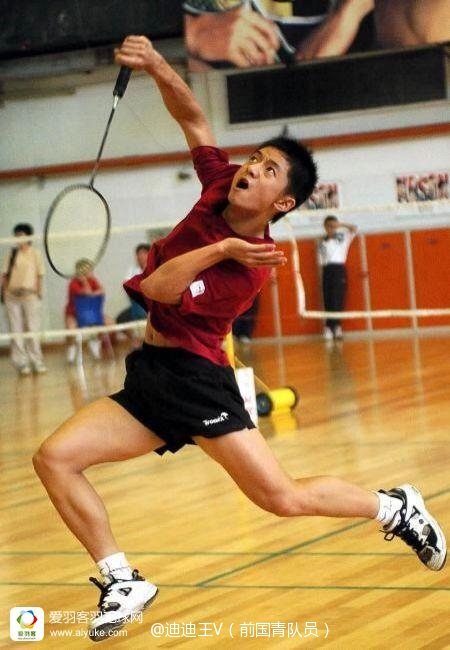 不知道大家有没有发现?上一期的文章里面没有放我打球的照片。那是因为爱羽客的编辑觉得我发给他的照片质量太low了。哎~我打球的照片确实很少,所以在今天的分享开始之前,我主动曝照一张(声明:此处不接受任何形式的批评!!!)。这是2004年全国羽毛球青少年分站赛贵州站的比赛,当时的对手是广西队的王以政。那会儿的条件比现在差远了,只有木地板场地,塑胶场地当时的普及率还很低。每个队员都需要自带松香(防滑用),不然就是“溜冰场”。年少的迪迪王,特别要感谢当时的摄影师,为我留下了这个瞬间。用一位朋友的话说,那会儿的眼神里有一股倔强。