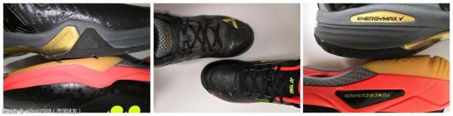 65Z则是黑色与红色的搭配,整体以黑为主,但是鞋底后半部与鞋帮采用了红色,有点撞色的意思,异常醒目。标志是亮黄色,让人一眼可见。相比于8510,球鞋整体配色更加艳丽,颜色对比更加强烈。但是黑色的层次感稍显欠缺。