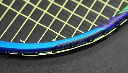 李宁90IVTD是三把里面最像艺术品的,色彩搭配虽然可能不是那么亮眼,但绝对和丑不搭边,属于大家都能接受的类型,而科技感十足的线条图案让人很容易联想到科技大片。李宁的立体风刃属于破风,自然是三款里面最尖的,挥拍的时候有划开空气的声音。