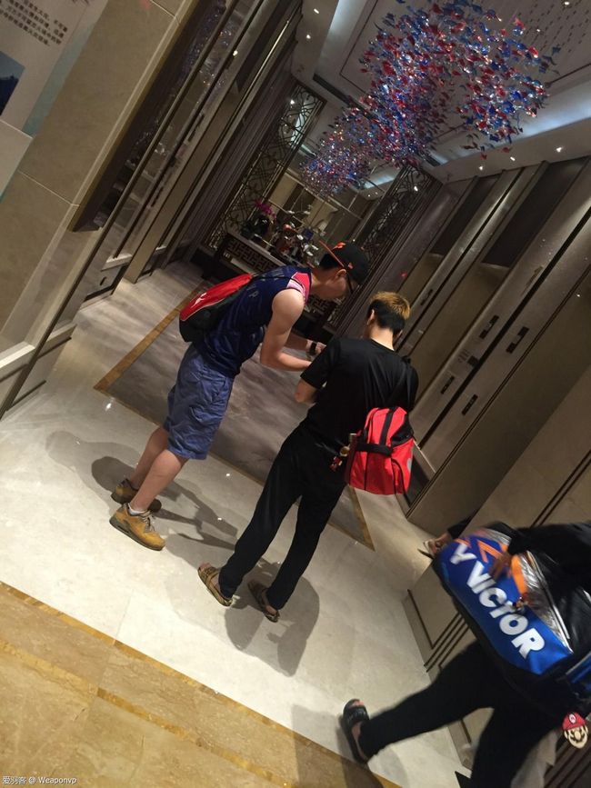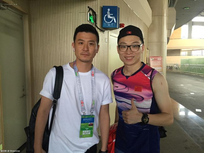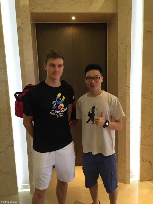 偶遇到蔡队,果然最喜欢白色!人很好。   也很契约精神,我拿出了李宁的球服,他礼貌地表示他签了给victor,不方便签李宁。