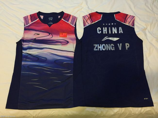 本次大赛服,漂亮!现场有背心版和短袖版,球迷版,大赛版。大赛版背后有印字。  李宁现场提供国旗的烫印,和名字的烫印(球员名字or 自己DIY都支持哦), 毫不犹豫!印上自己的名字和国旗。