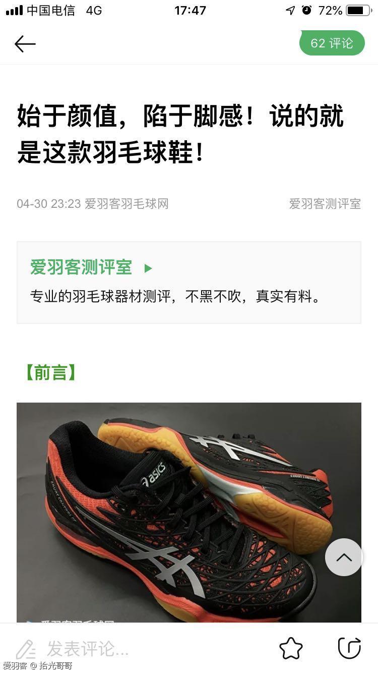 总结:亚瑟士的主业毕竟不是羽毛球,所以亚瑟士的羽毛球鞋与YY、李宁和胜利相比并不会有优势,但也可圈可点。天启作为一双原价上千的球鞋,总体来说是非常不错的。虽是羽毛球鞋,但又带有一些跑鞋的特点,个人非常喜欢它的舒适感。至于性价比,只能说见仁见智了。仅从价格来讲,爱羽客的精华帖福利是诚意十足,希望大家勇于参与,多多发表好帖。