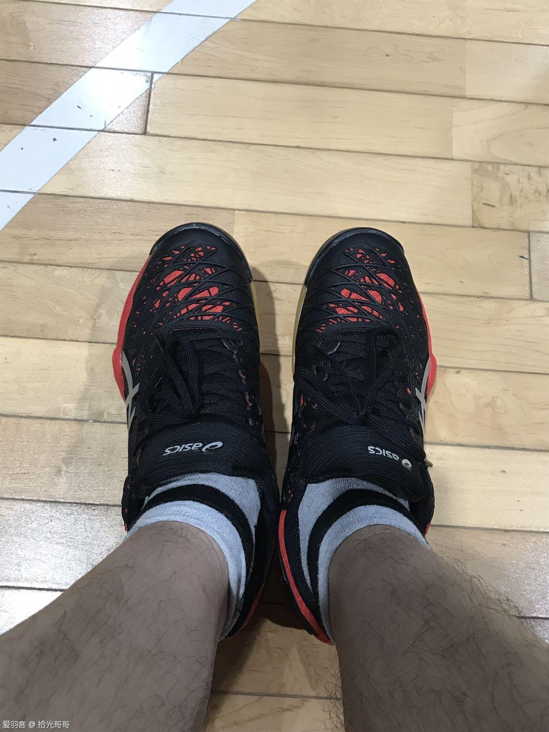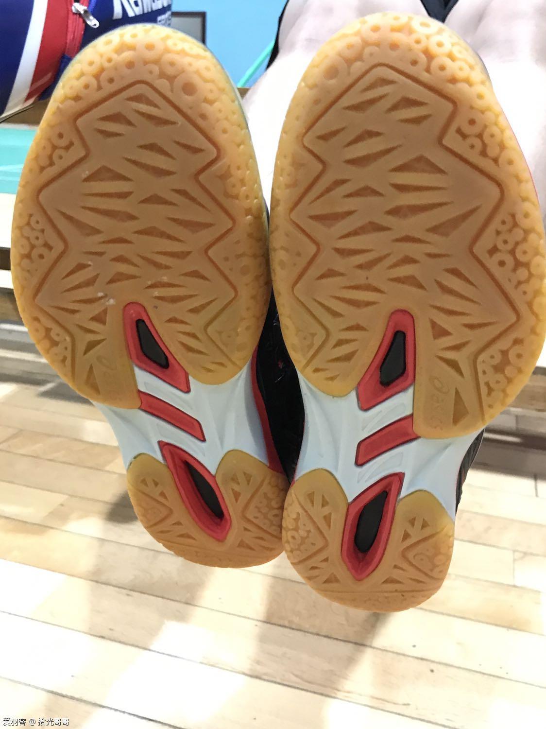 鞋子的做工虽然不够精细,但毕竟没有质量问题,用料是一样的,不影响使用就行,好不好归根结底还得穿上了才知道。亚瑟士天启的重量很轻,穿在脚上,鞋面和鞋底与脚掌高度贴合,包裹性很好。另外,作为以跑鞋闻名的亚瑟士,减震效果一直是行业的佼佼者,羽毛球鞋也不例外。天启的鞋底中间稍微凸起,顶住足弓,而看似坚硬的鞋底,因为较厚的鞋垫,踩在脚下很柔和,所以减震效果非常好。