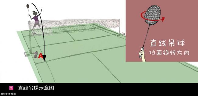 吊直线,通常运用在把对手从ta的后场调动的网前的场景中,目的就是拉开对手的场地空档,让对手在大范围的跑动中漏出破绽,为自己创作得分机会。