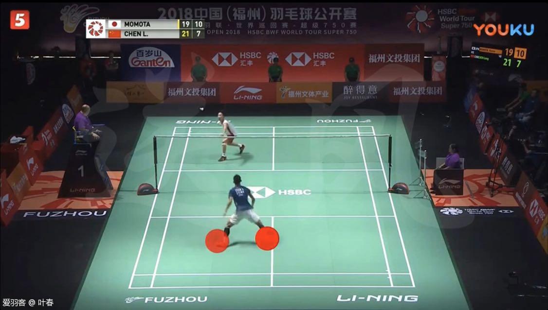 2018年,第二局10:7这一分,桃田劈吊斜线,谌龙仓促回放,并将右脚放在后面,桃田一个回放,直接造成谌龙二次启动,失去重心。