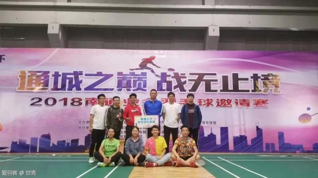 大二,经历一年的练球,慢慢的进入学校伪高手名单。试着去接触社会的羽球大佬,迎来了自己的第一个羽球团体赛:南通酋长业余团体赛。第一次试着组队、喊人、 训练、 配对。16支队伍, 分四组,小分险胜进入八强。 现在回过头来看才知道这个比赛水平有多高 ,四强基本是专退的队伍。第一次见识专业和业余的差距。也是在这时跟着师傅到少体校更加深入的练习完善基础。