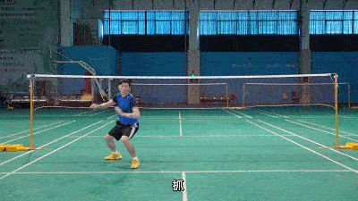 现在我把动作做一个连贯,再看我做一次哦。回位 抽 看  抓  回位 扑 看抓  回位抽看抓回抓   大概是这种情况,你在网前四个点,你就可以跑得比较顺畅了。