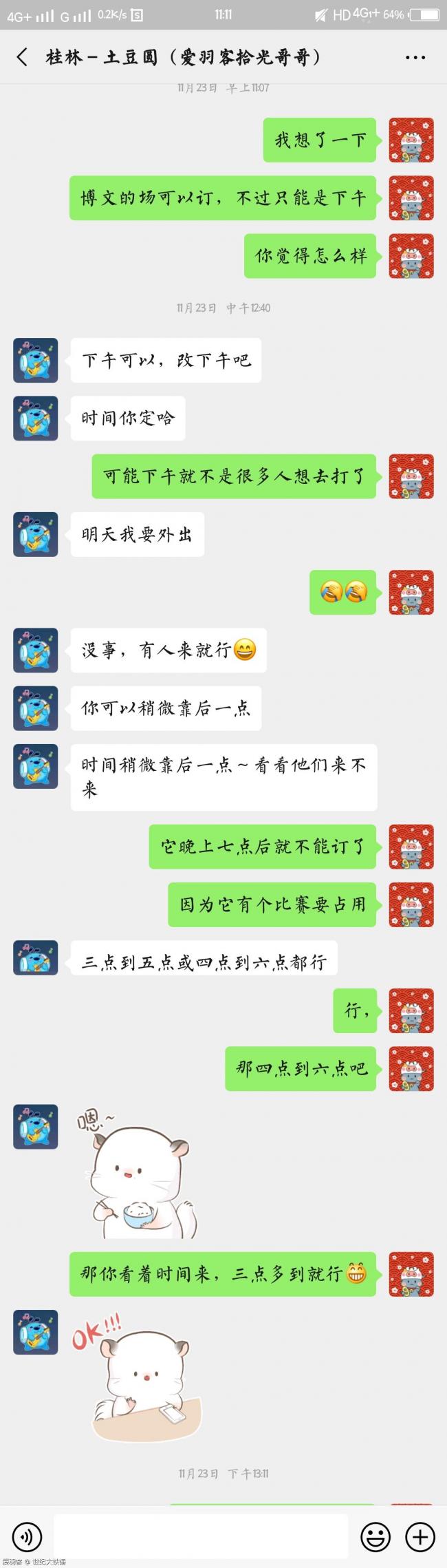 最后特别要提到的是,这一年,我在爱羽客里认识到了拾光哥、大雄等一些好友,在今年的11月底,我和拾光哥约了一次球,很热情地邀请他来到我们学校隔壁的球馆,那天下午很开心,感谢我们这次相遇,也感谢羽毛球带给我很多收获,不问将来,专注当下,你好,岁月就好,丹心不改,羽我同行,羽毛球这项运动是我人生中浓墨重彩的一笔。