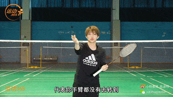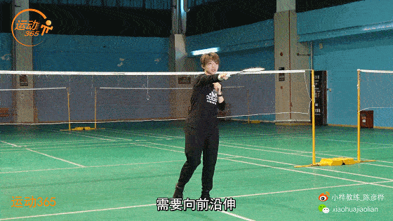 从这里挥到这里,所以感觉只是。摩擦到球头,你一拍子就挥掉走掉,所以当你的杀球不会很重,球质不够,现在你要调整到你挥拍挥完的动作。需要向前沿伸,到你手臂有这个向前指的动作,你的力量才是传出去的。