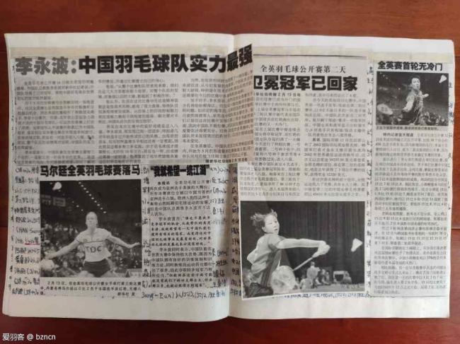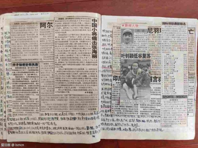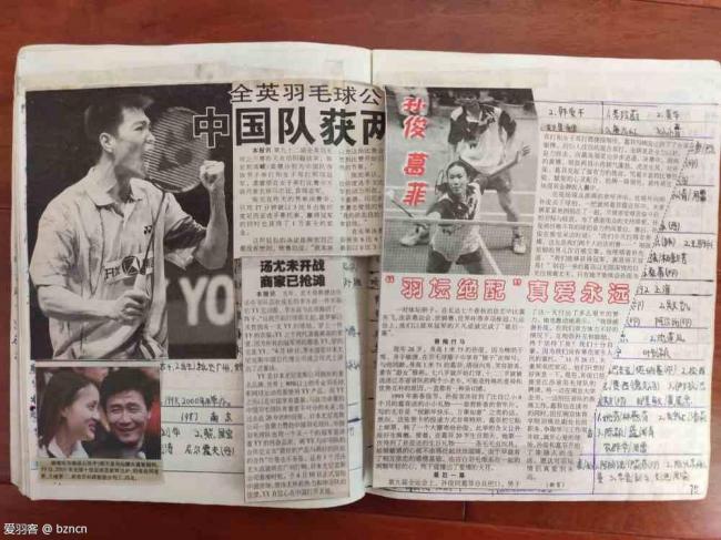 周末在家,没事翻看自己20年前做的五本羽毛球报纸剪贴本。看着现在已经泛黄的本子,我的记忆仿佛已经回到了20年前的那个羽毛球时代。笔记本记录时间是1998年底到2003年初的比赛,当年喜欢羽毛球时,没有羽毛球杂志,报纸上的羽毛球信息也少,只有电视上有大的羽毛球比赛才有直播,网络也不发达。我在笔记本上记录羽毛球比赛内容,羽毛球信息和比赛心得,贴上各种报纸上的羽毛球图片新闻!真是美好的回忆!