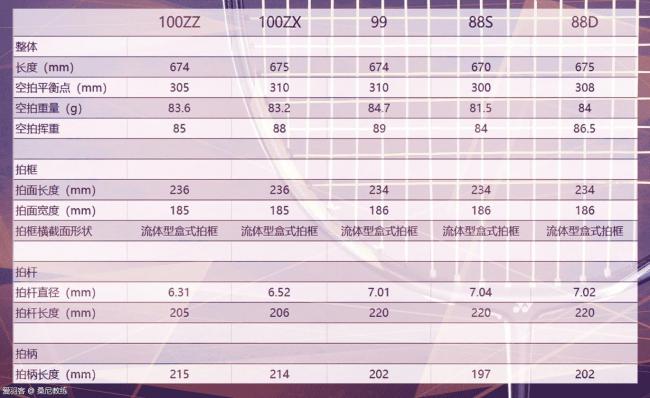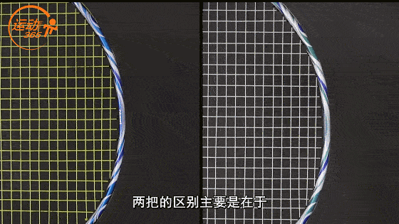 我们现在说完了涂装,马上我们来说说它的主打科技吧。首先两款球拍的拍杆都加入了新次元碳素,直径相当的细,特别要注意的是ZZ是实心的拍杆。拍框的顶部、底部、两侧都更加接近直线,来扩大甜区。