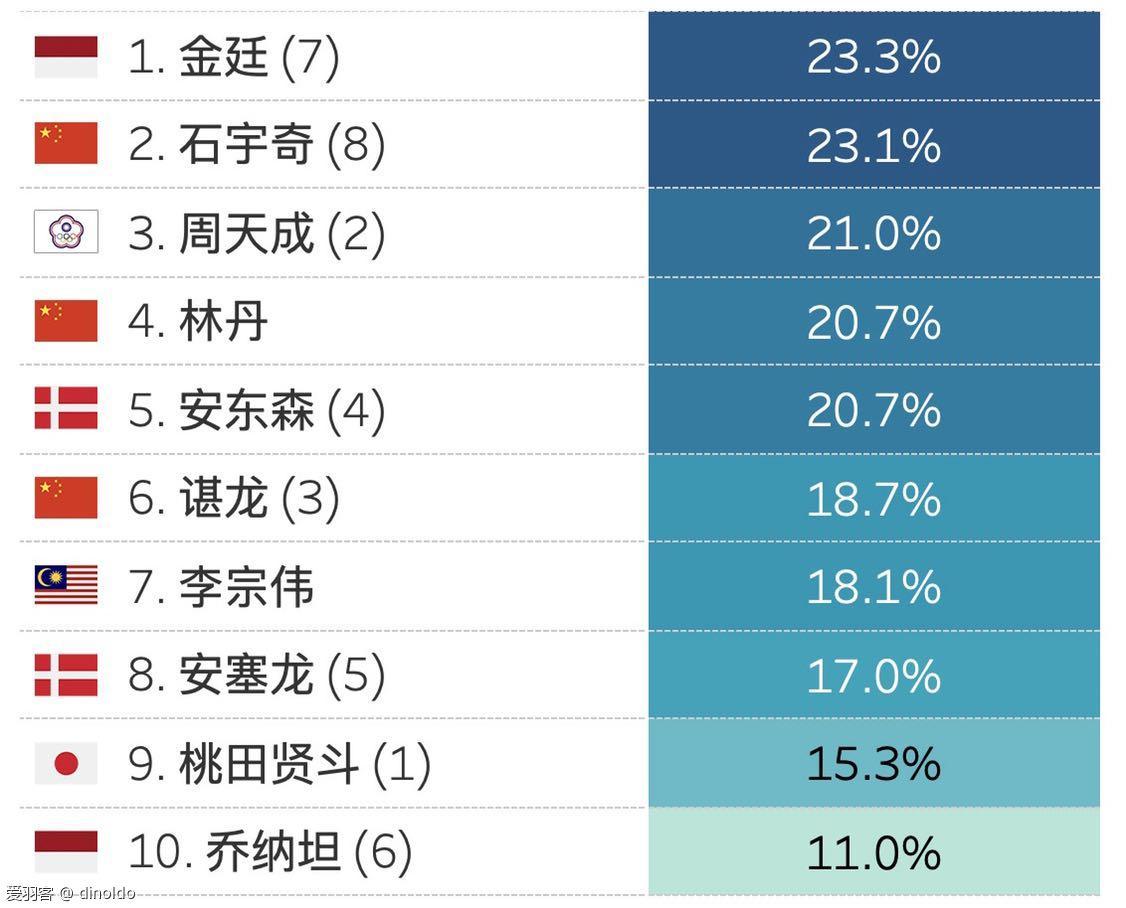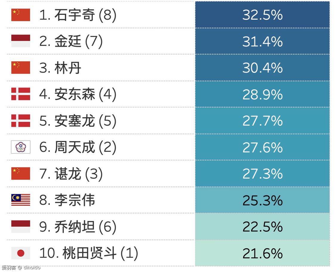 另外, 我也记录了20场2006-2016年的林李比赛中林丹和李宗伟的杀球。所以现役前8的数据是对阵其他现役的,而林丹和李宗伟的数据则是取于两人交手的比赛。