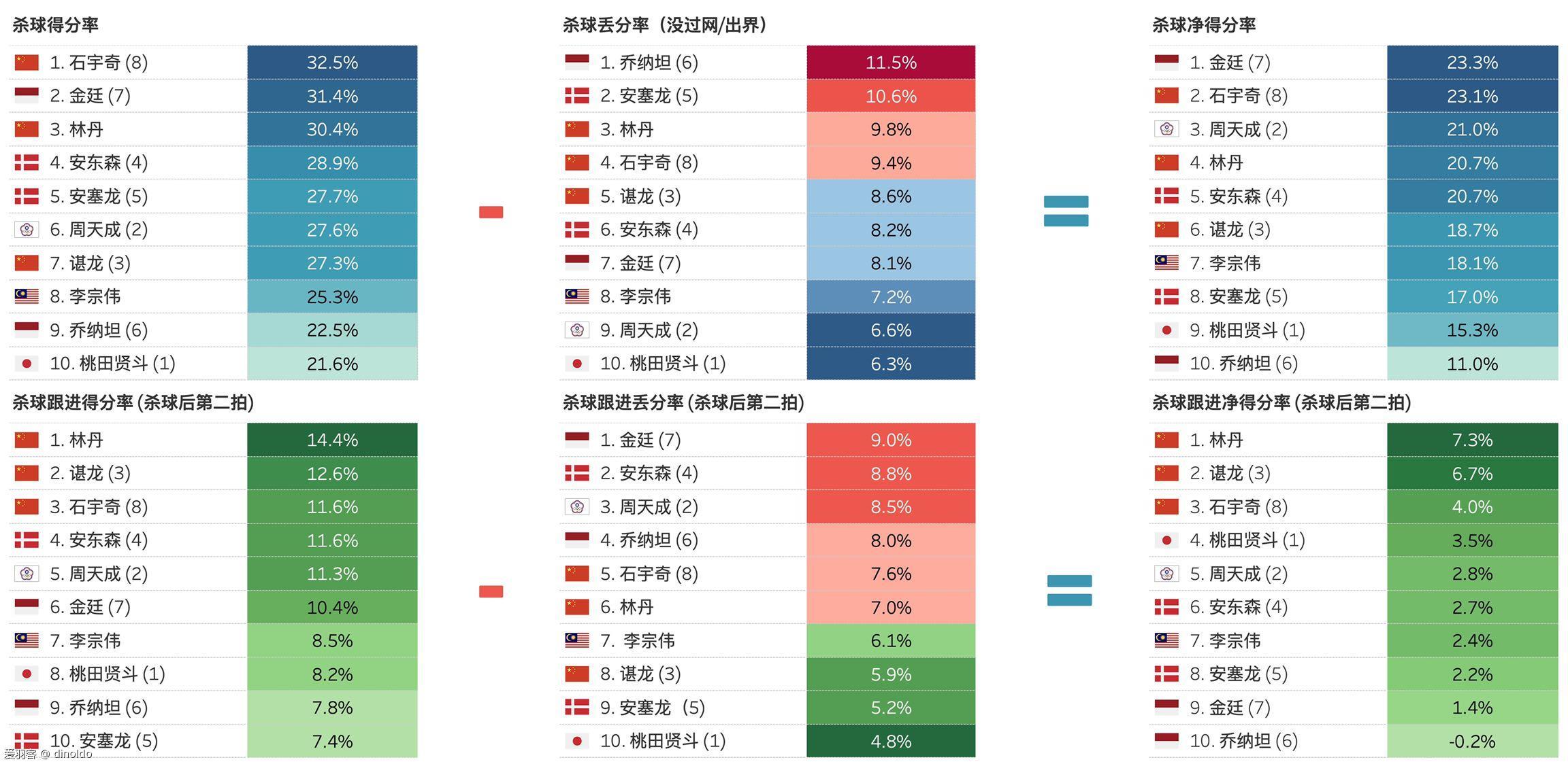 2.3 杀球净得分率 (杀球得分率减去杀球丢分率)