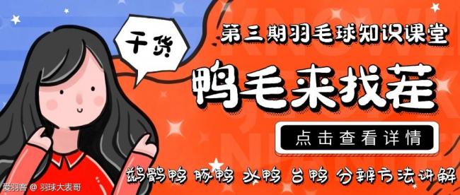 这一期我们再来学习鸭毛的知识,想不想知道鹚鹘鸭的由来?豚鸭还有几个名字?以及豚鸭和水鸭的故事?为什么豚鸭毛弯拱度大?比重最重?现在市面上常见的鸭毛球有鹚鹘鸭,豚鸭,水鸭和台鸭,樱桃鸭的球我没找到就先不讲,这些鸭的羽毛都很像我们应该怎么去辨别呢?一起看视频吧!