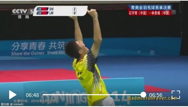 石宇奇2003年进入少年体校学习羽毛球,11岁进入省队训练,后入选国青队。2012年,石宇奇参加亚青赛,获得U17组冠军。2014年是石头丰收的一年,世界青年排名第一,获得亚青赛冠军,世青赛亚军(决赛中输时称“双子星”的队友林贵埔),青奥会冠军。值得一提的是,南京青奥会半决赛,林贵埔击败了来自印尼的金庭与石宇奇会师决赛。图2为南京青奥会夺冠时刻。