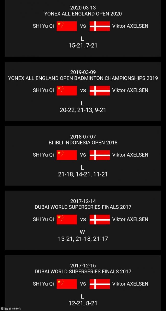 安赛龙,1994年出生,2016里约奥运铜牌,2017年世锦赛冠军,2020年全英冠军。我认为安赛龙应该是石宇奇除桃田外另一个最大的对手,交手记录1-4,如图7所示。