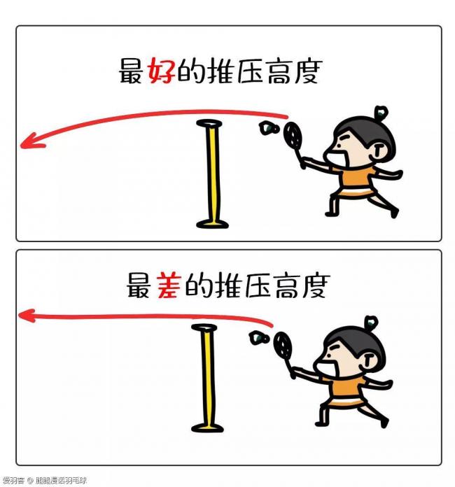 高度:最好的接发球推压一定是球在过网后保持向下的状态,最差的情况要保持平网后,在飞行过程中,过网后的球基本上是与球网高度平行的状态